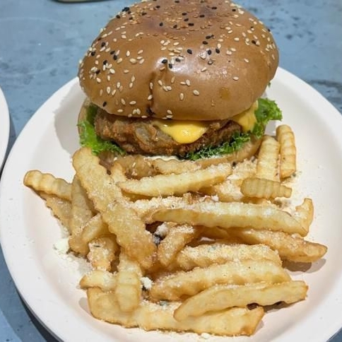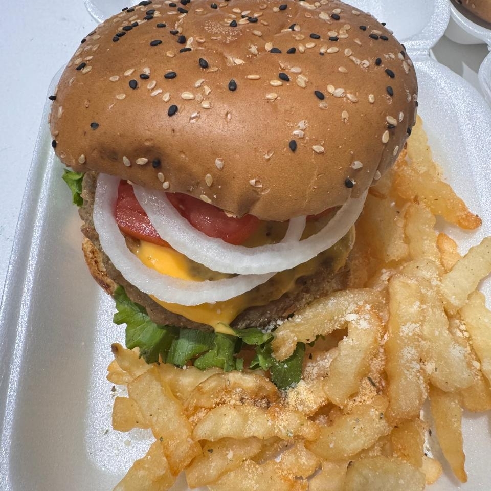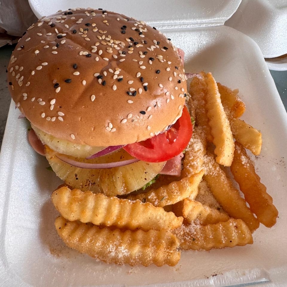 Hamburguesa (Hawaiana, jamón y queso) / con papas