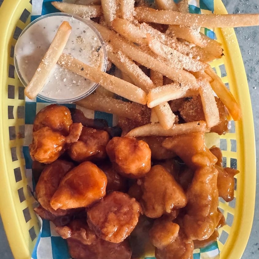 Boneless con papas (BBQ, Mango habanero, Piña )