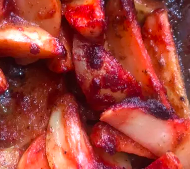 Papas adobadas: aproximadamente 250 g de deliciosas papas sazonadas con una mezcla de chiles secos guajillo y serrano en salsa.