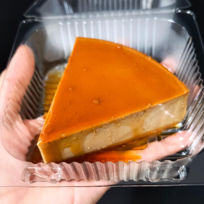 Rebanada de cremoso flan napolitano con caramelo delicioso