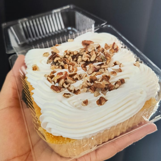 Rebanada de pastel super rica y mojadita de 3 leches con rompope