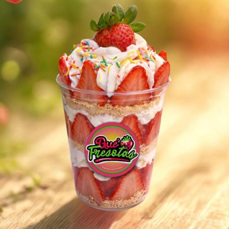 El favorito de la casa. 🌟 Fresas con nuestra deliciosa receta secreta cremosita, acompañada de capas de galletas María trituradas; Acompaña tus Fresotas con tus Toppings favoritos. 💕 🍓 TODOS NUESTROS PRODUCTOS SON PREVIAMENTE DESINFECTADOS. ❤️