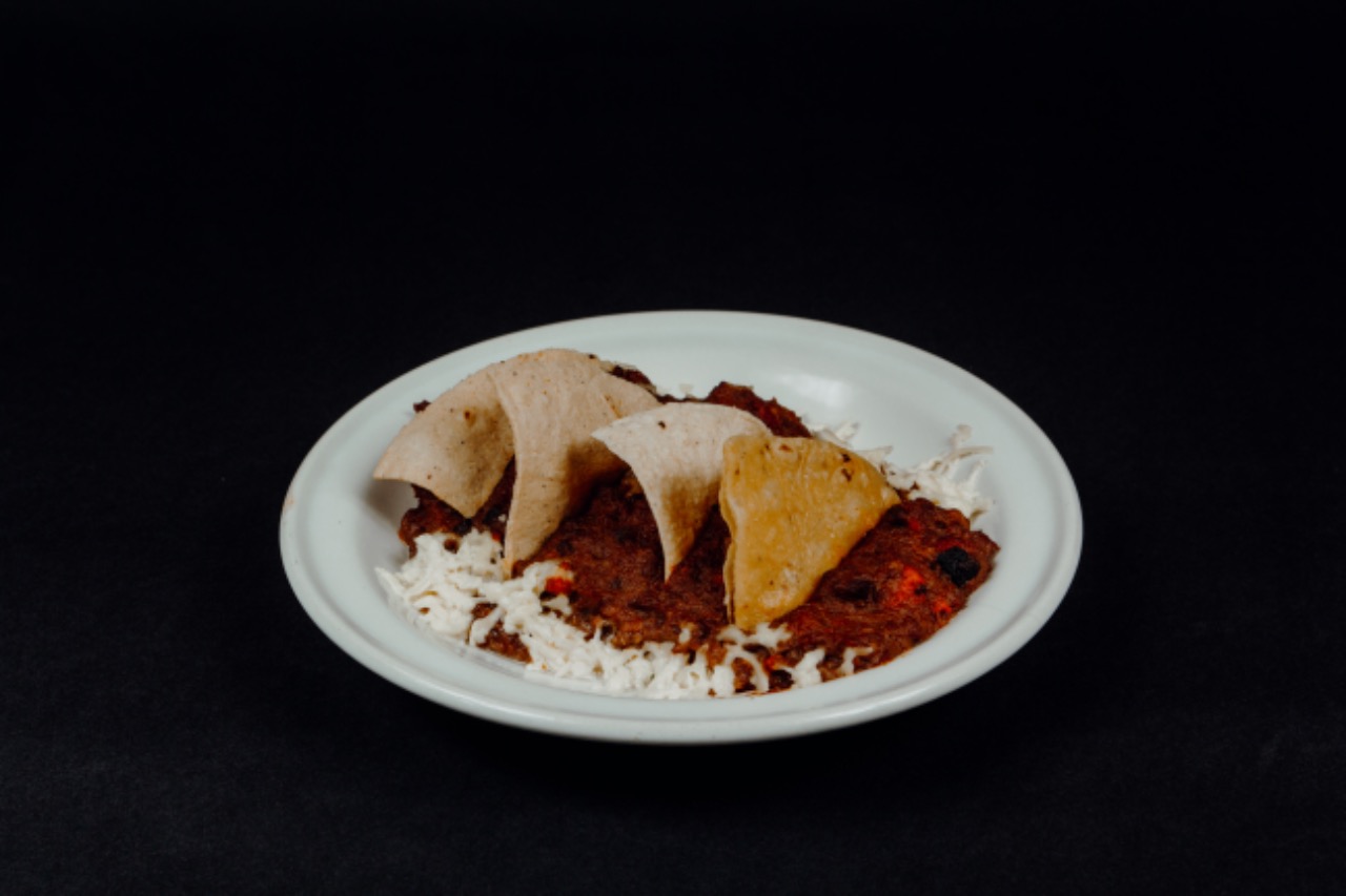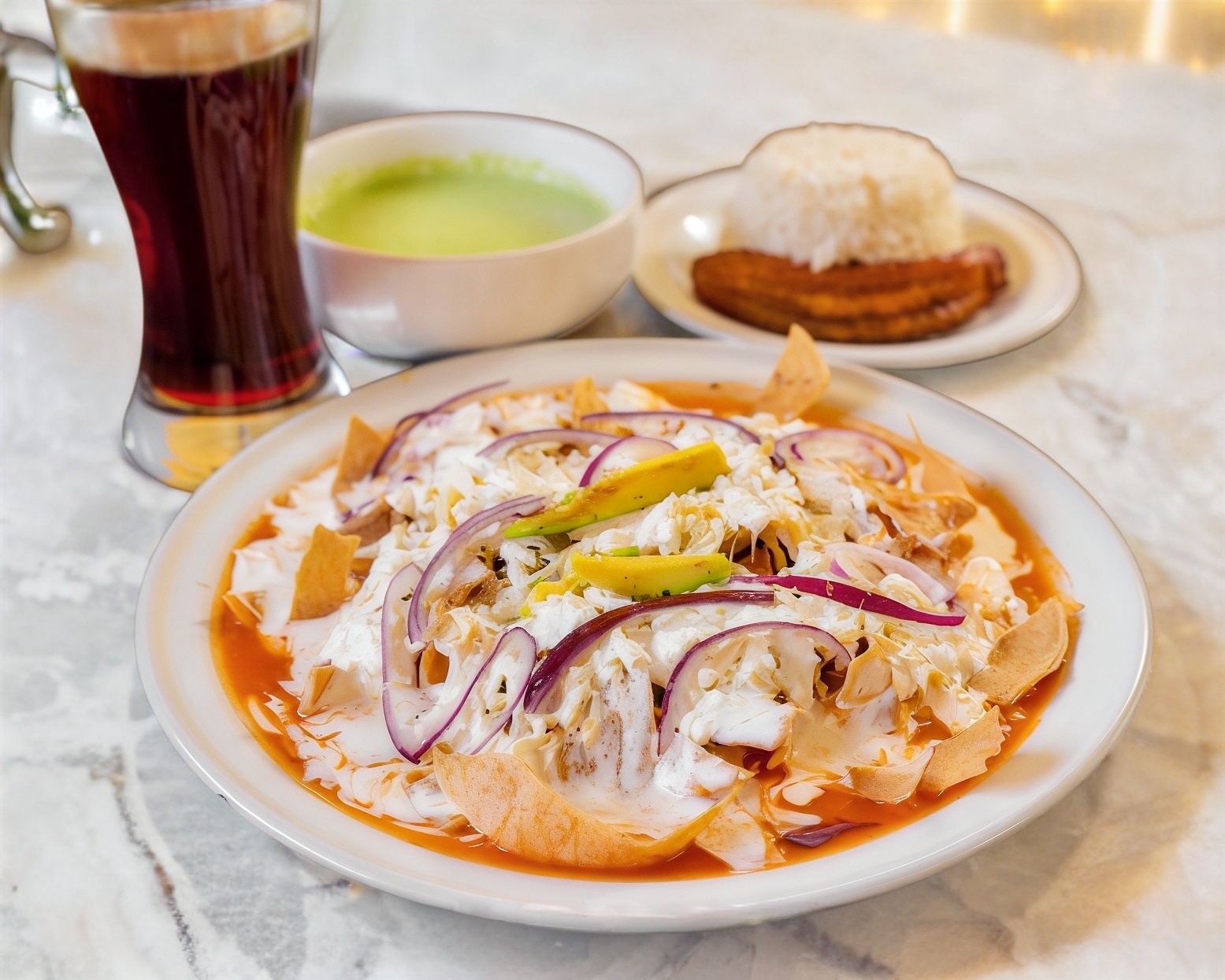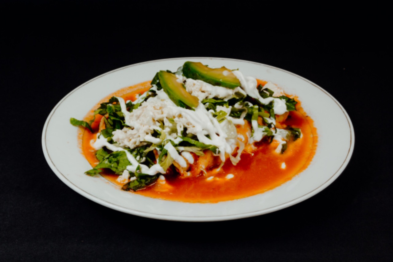 Exquisitos chilaquiles en nuestras deliciosas salsas acompañados de pollo, crema, queso, cebolla y aguacate (Elige la salsa: tomate/ranchera/verde, Elige tu guarnición favorita: arroz/ensalada/frijoles refritos, incluye agua natural del día de 1/2 L)