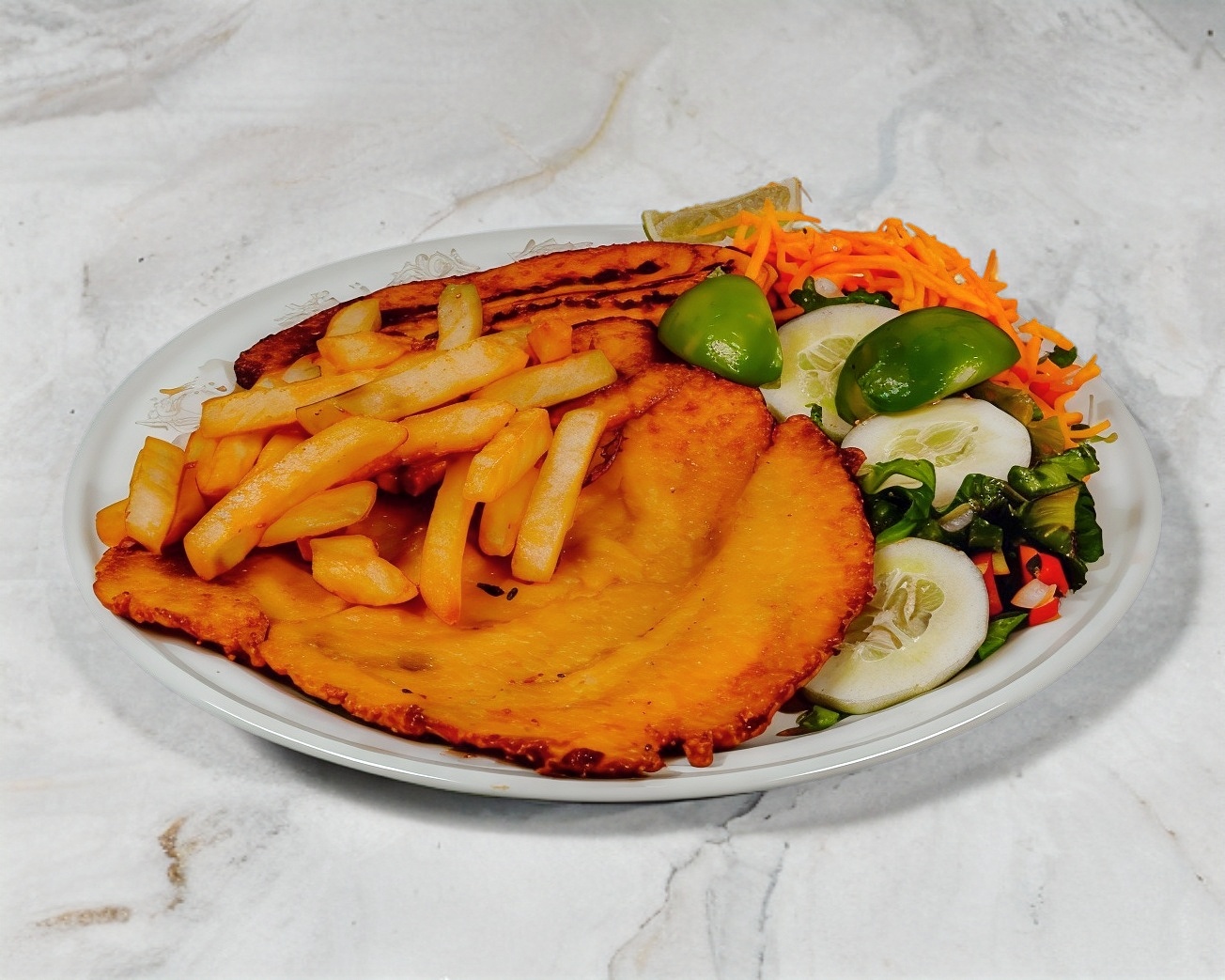 Delicioso Filete de pescado empanizado que te hará chuparte los dedos. (Elige tu guarnición favorita: arroz/ensalada/frijoles refritos, incluye agua natural del día 1/2 Lt y tortillas)