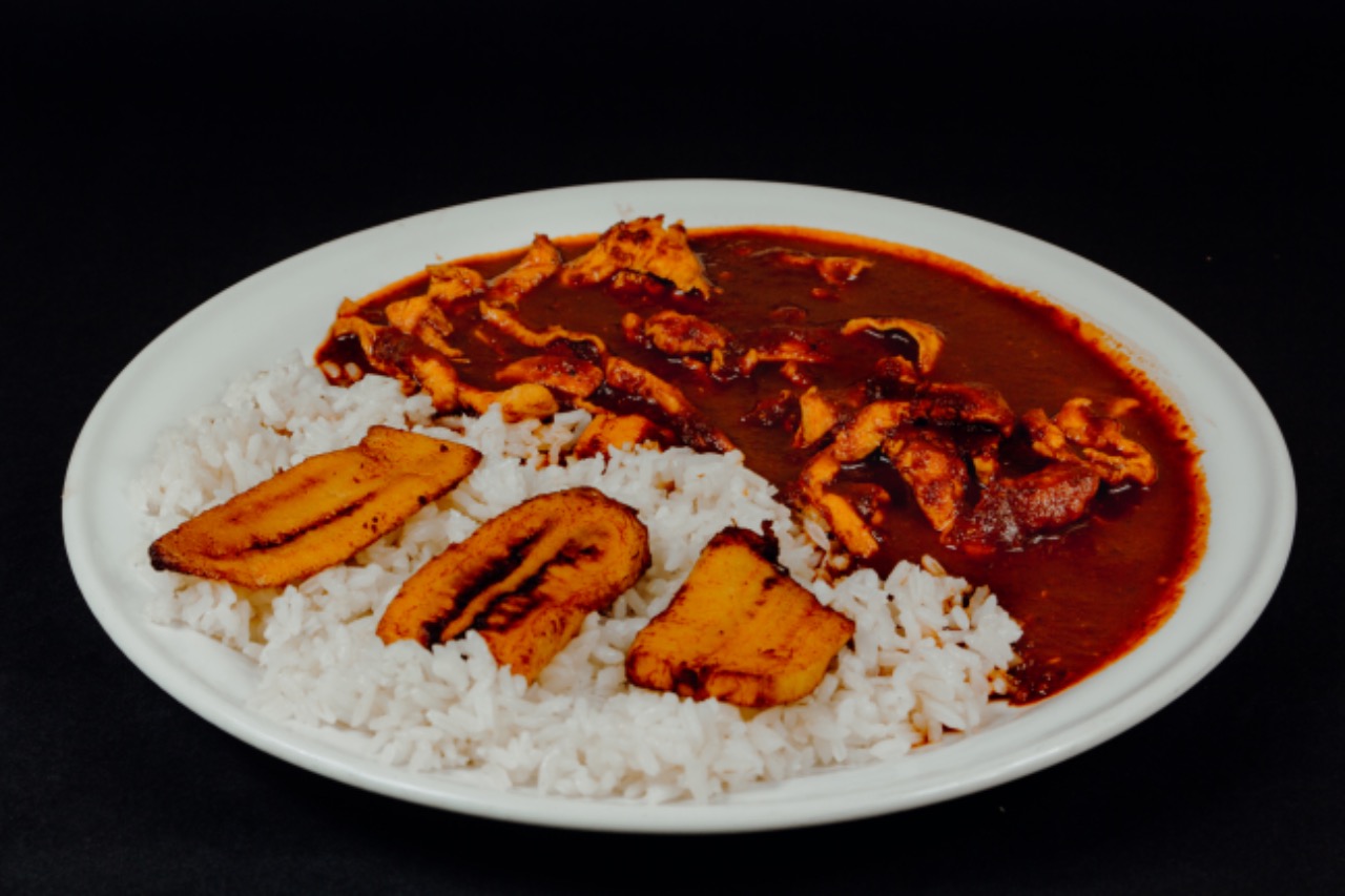 Exquisitos plátanos fritos bañados en crema y con queso fresco encima.