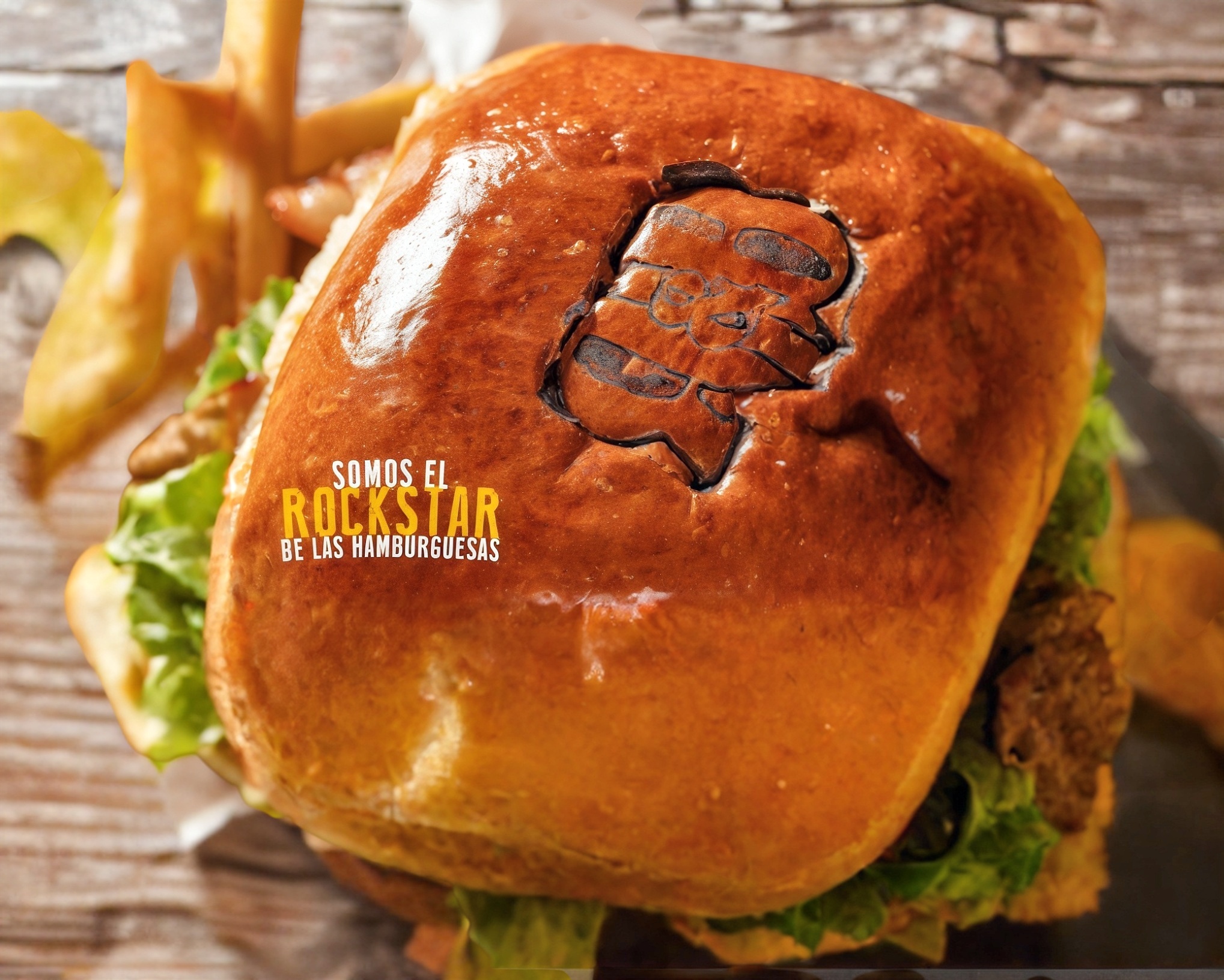 Hamburguesa de res con 2 quesos, jamón, tocino, pimientos, vegetales frescos y aderezos.