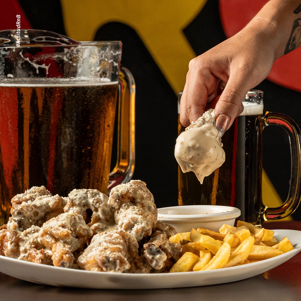 250g de Boneless con papas, salsa a elegir: Bbq, Bufalo, Rock, Mango habanero, Ajo parmesano o Cacahuate endiablado.