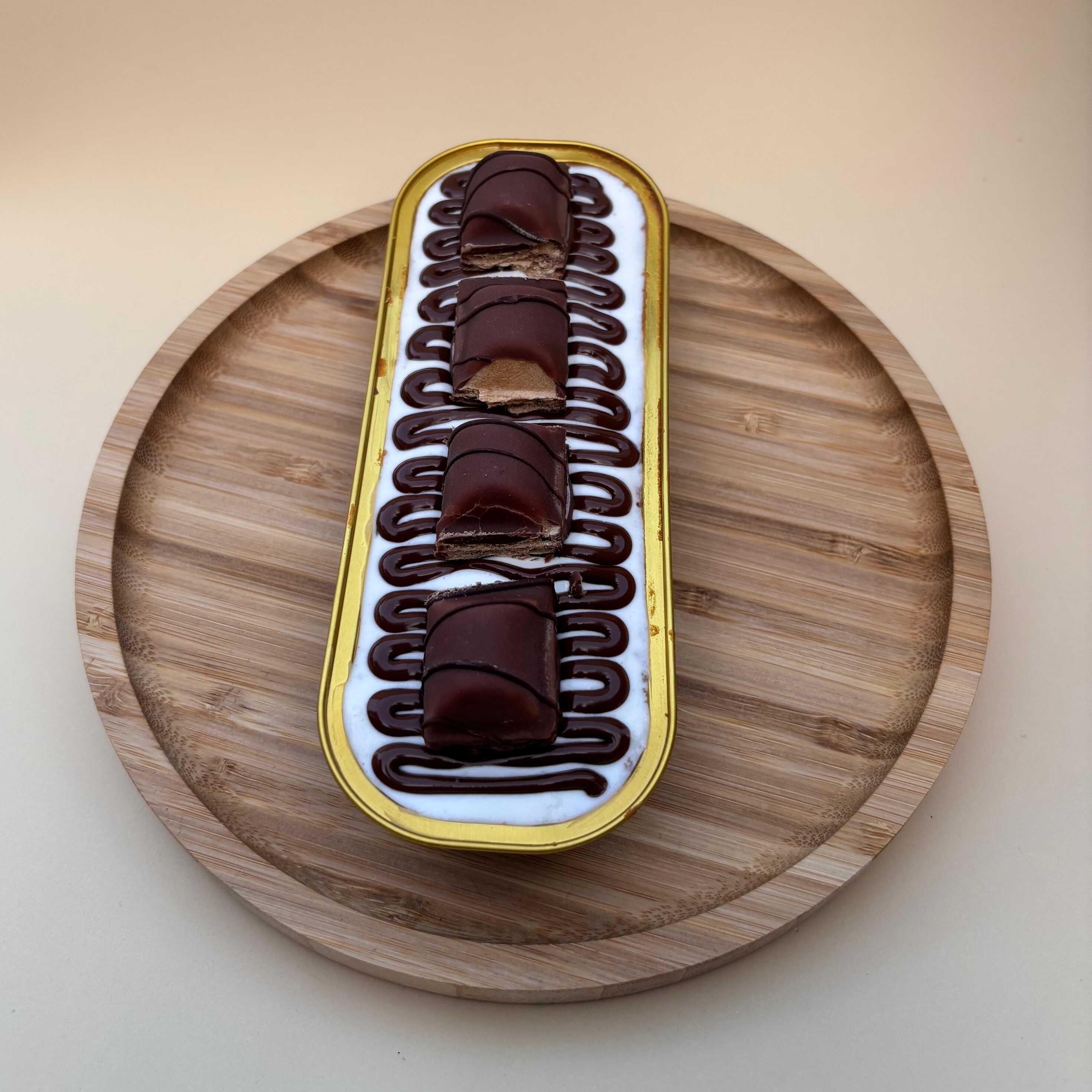 Pastel de 3 leches con betún cubierto de Kit Kat con nutella
