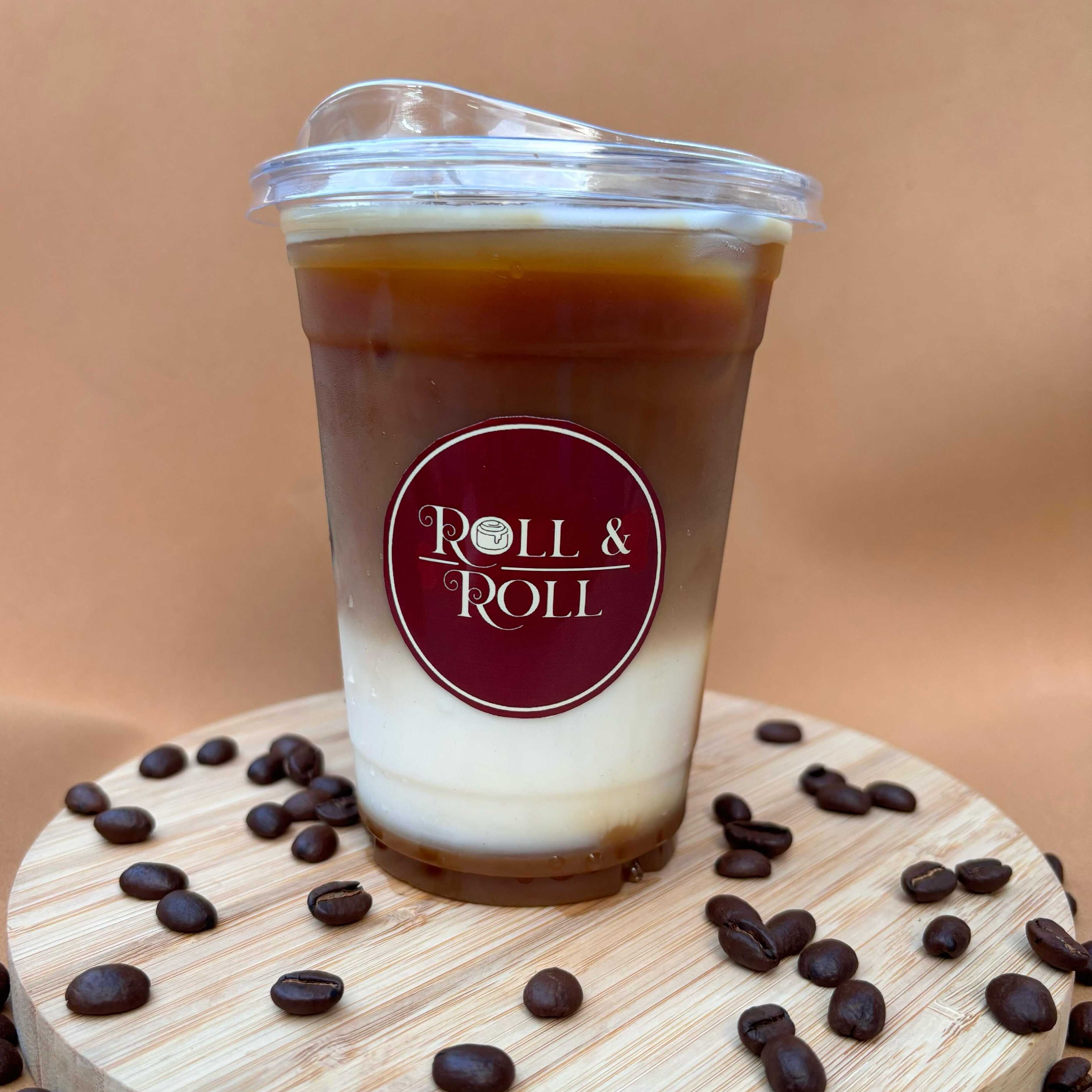 Frappé con café y caramelo con crema batida, caramelo y chispas