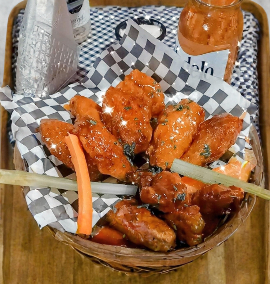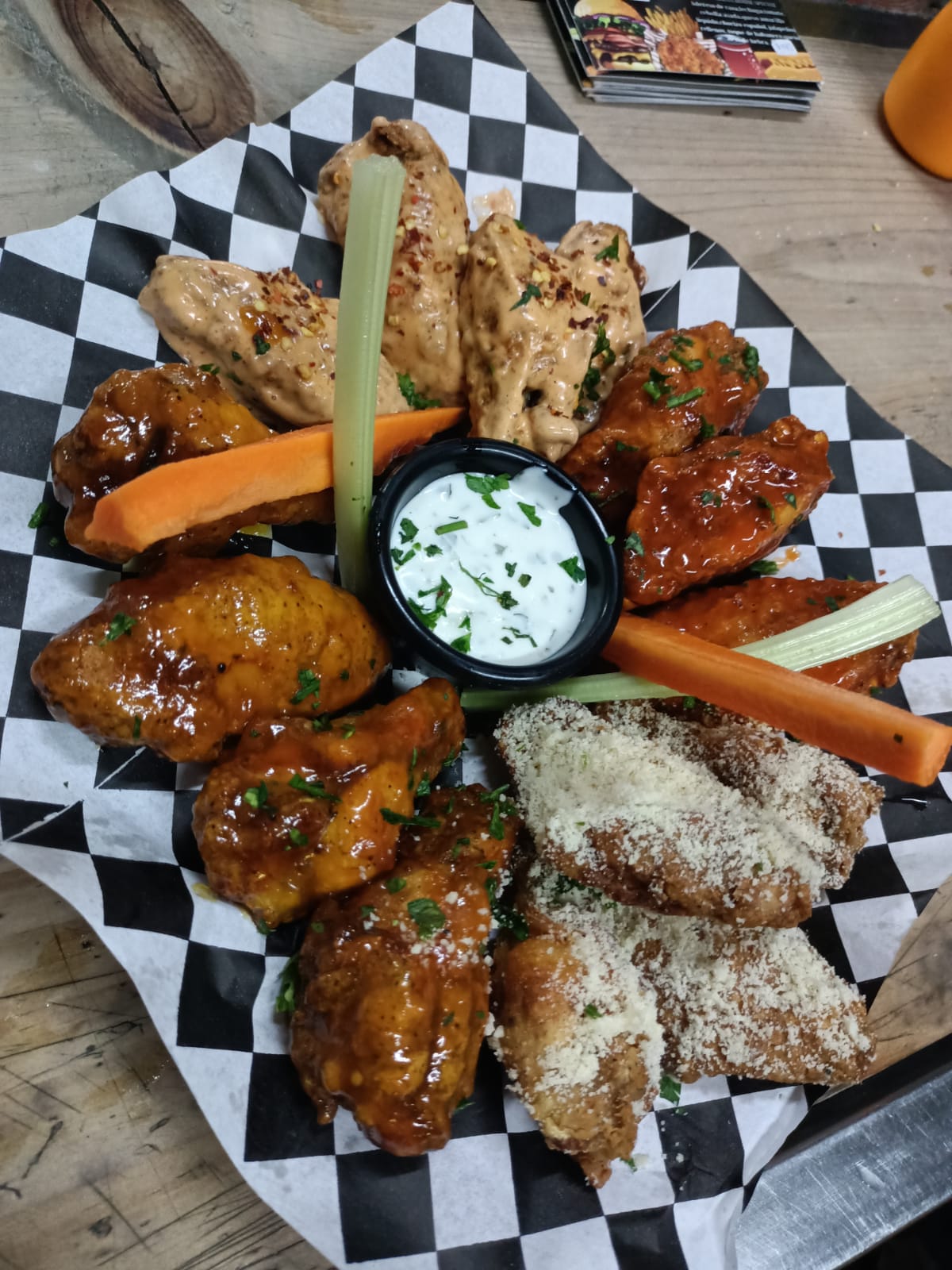 8pz de alitas con apio y zanahoria.