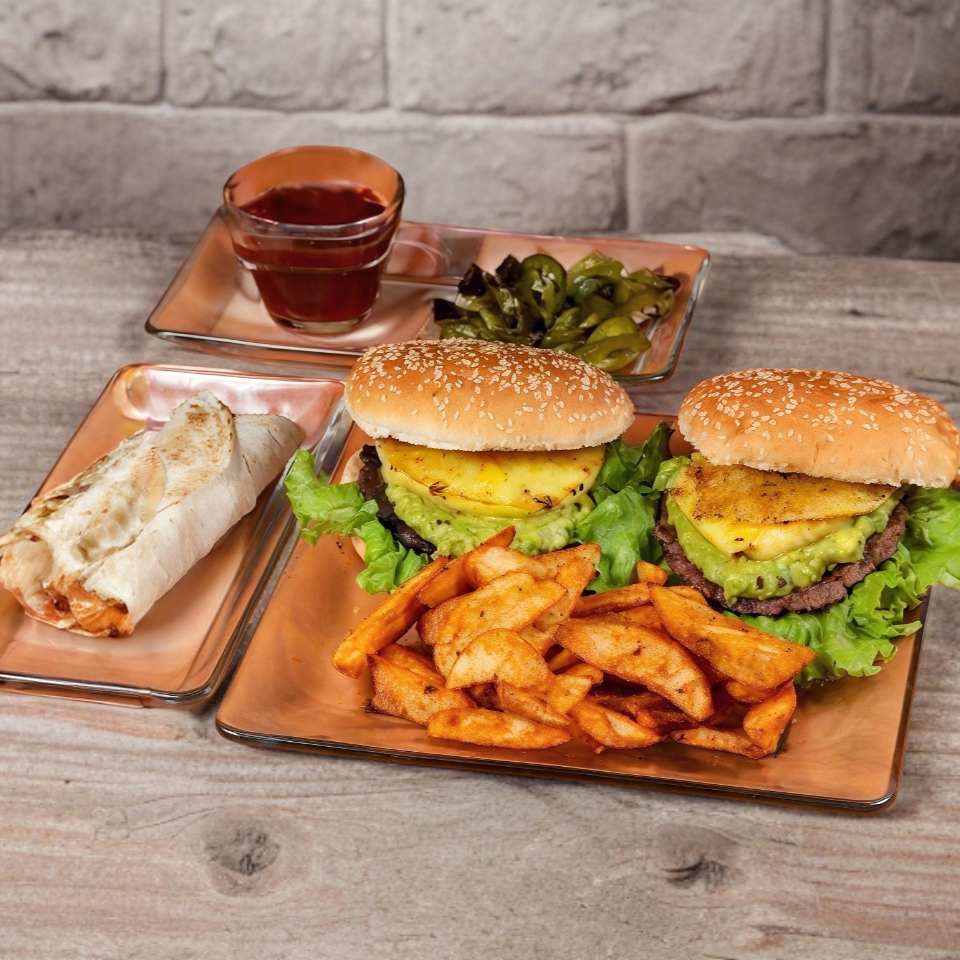 Hamburguesa hawaiana con papas*2 + BURRITO*1