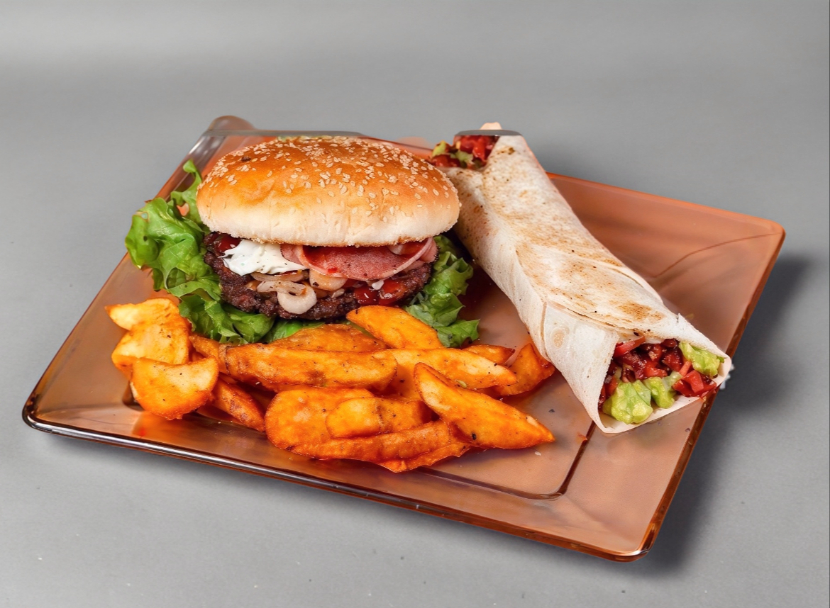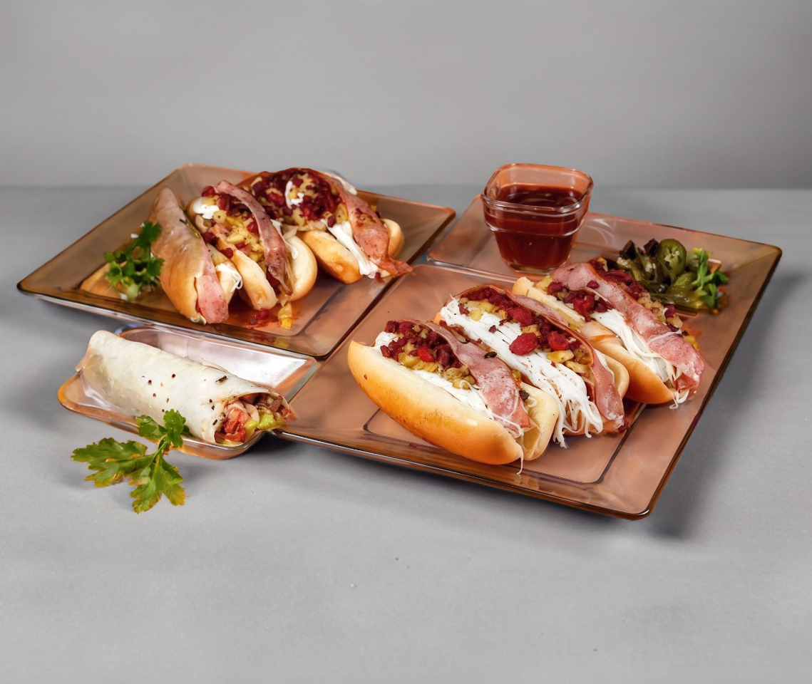Hamburguesa con papas*1 + BURRITO*1 + 3 hot dogs preparados*1