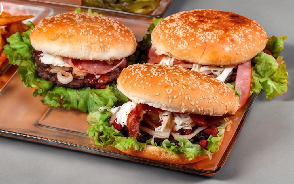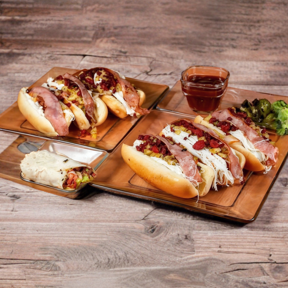 1 Hamburguesa bacon con papas + 3 hot dogs preparados