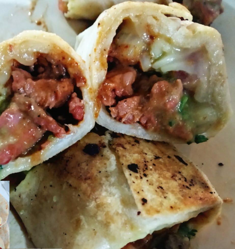 BURRITO DE CARNE ENCHILADA CON GUACAMOLE