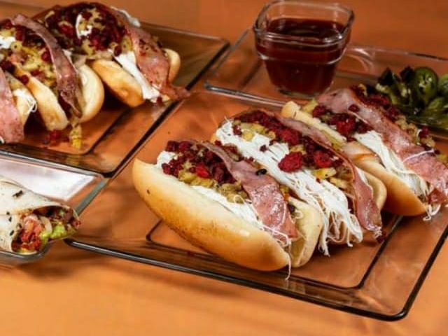 Tomate cebolla asada piña chorizo tocino queso de hebra catsup mayonesa salchicha pavo