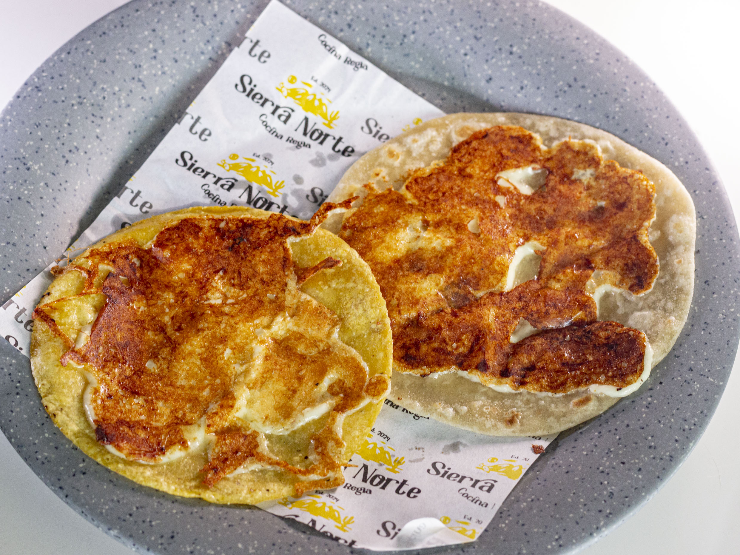 totopos hechos en casa bañados en salsa con crema y queso de hebra