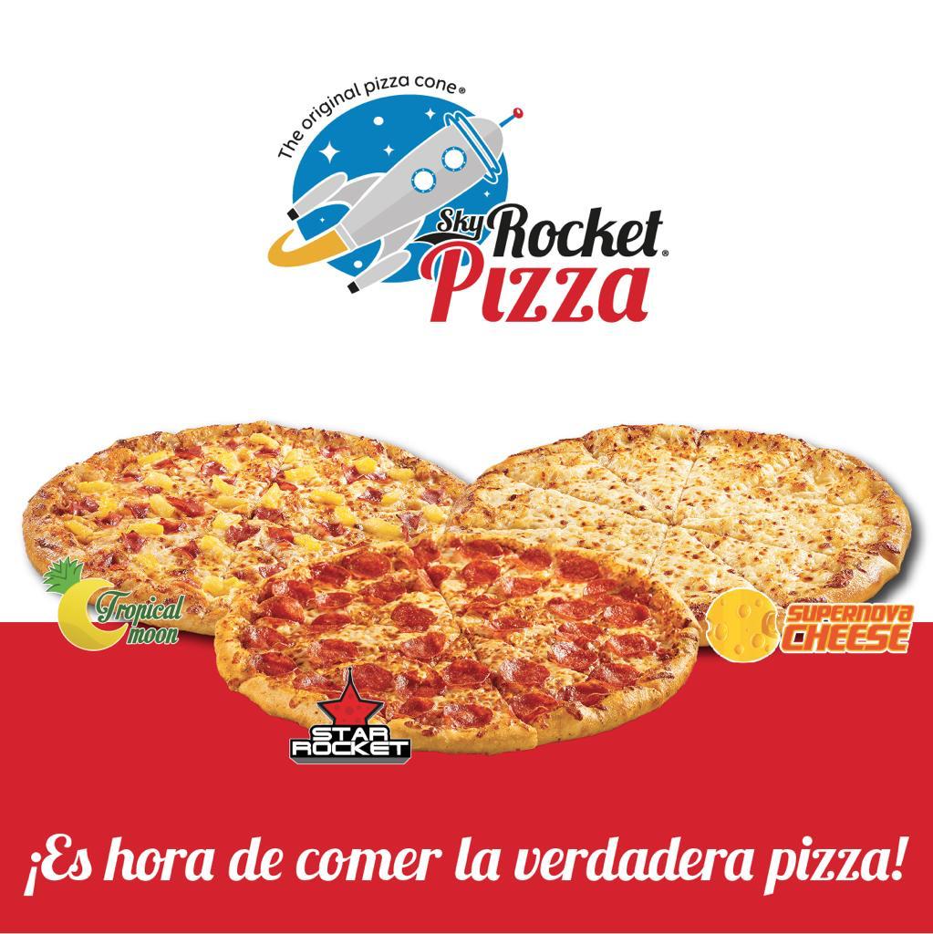 Cada Bocado será cósmico. Queso mozzarella mix, jamón, tocino y pepperoni.