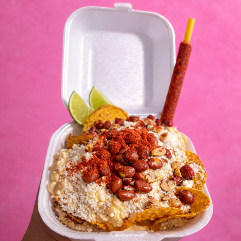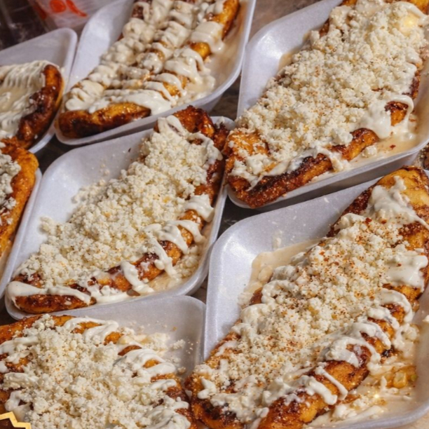 Deliciosos esquites preparados con grano de elote natural calientito, mayonesa cremosa, queso rallado, chile en polvo y un toque de limón. Un antojito clásico, cremoso y lleno de sabor que puedes disfrutar a cualquier hora