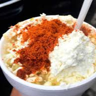 Chicharrón , mayonesa cremosa, queso rallado, chile en polvo, limón y salsa al gusto.