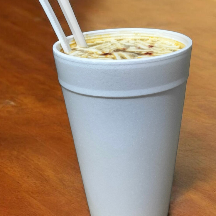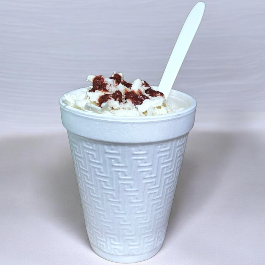 Sopa maruchan de camarón habanero de medio litro con granos de elote, crema, queso amarillo, mayonesa, y queso blanco.