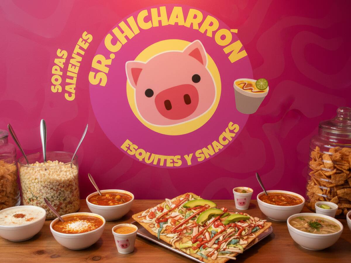 Chicharrón de cuadros con grano amarillo y cremas.