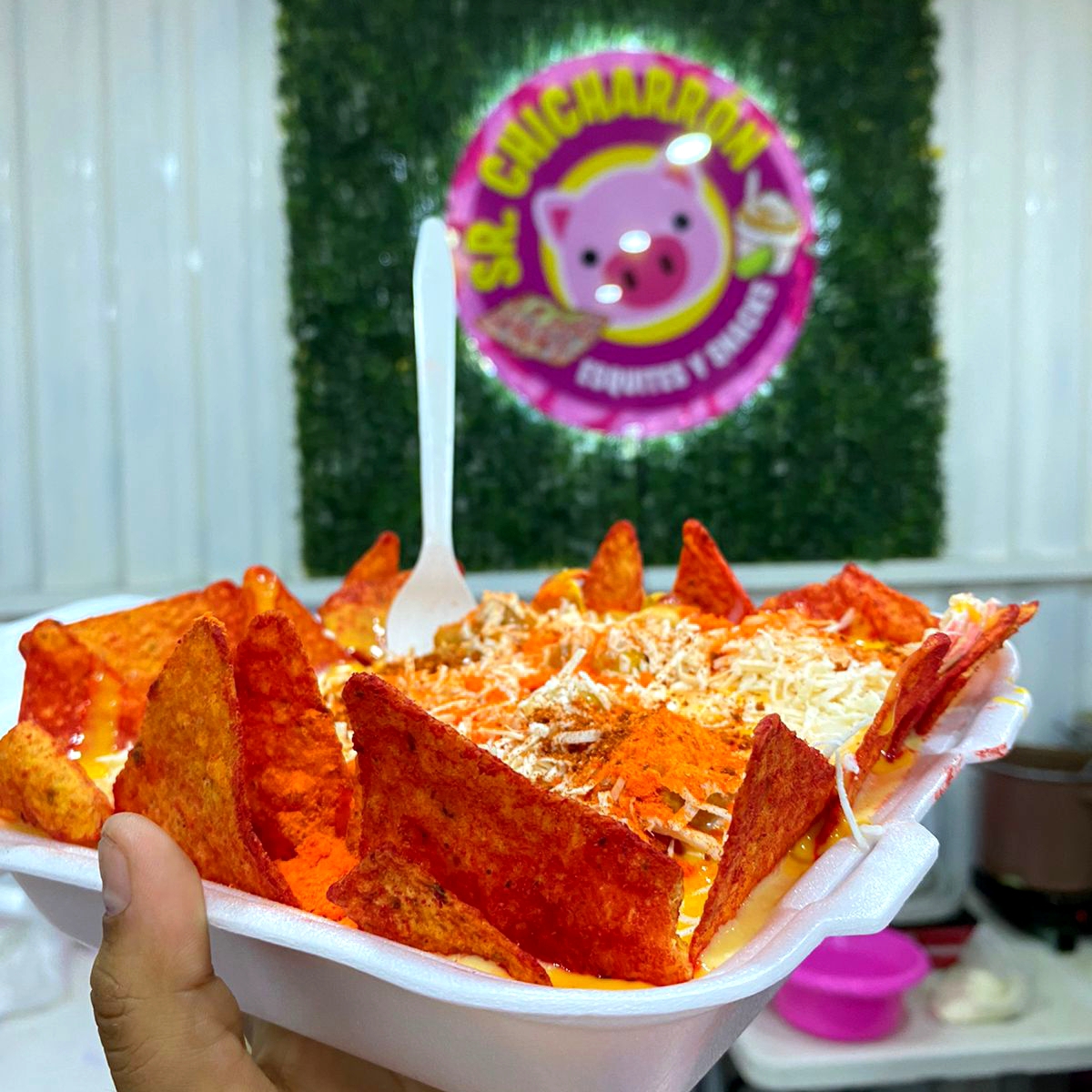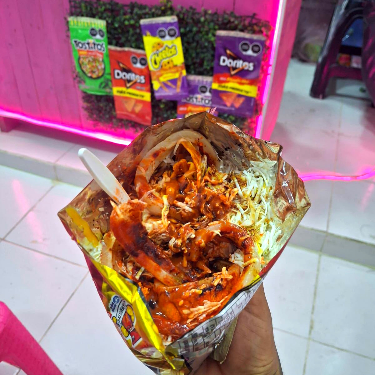 Sabritas a elegir Tostito Verde Doritos Nachos Chetos Flaming Hot con grano, cremas y toppings especiales tostito verde, Dorito nacho o chetos flaming hot.