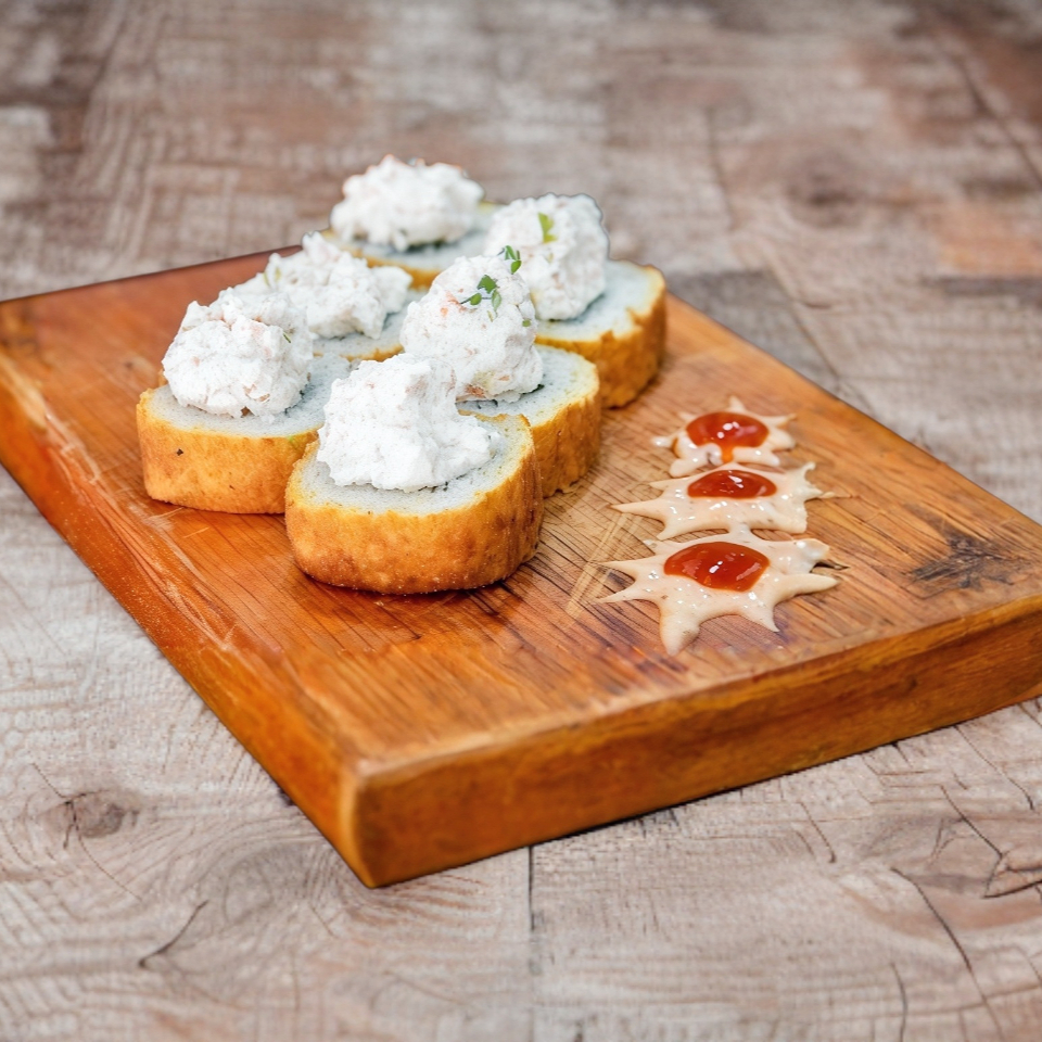 DENTRO: CAMARON EMPANIZADO, QUESO MANCHEGO Y AGUACATE FUERA: CRUJIENTE EMPANIZADO CON ADEREZO TAMPICO