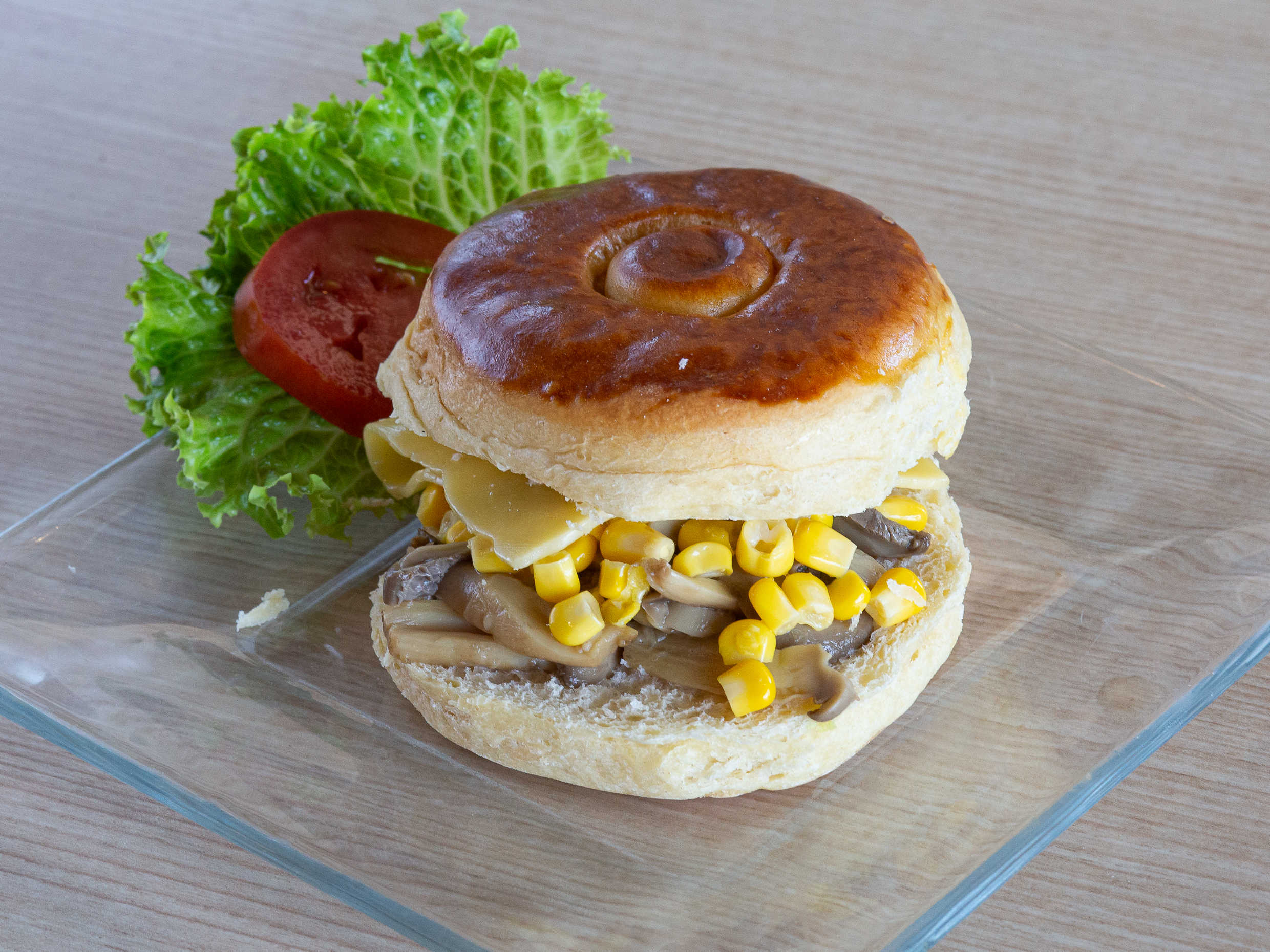Champiñones, elote y queso. Incluyen café americano o té.
