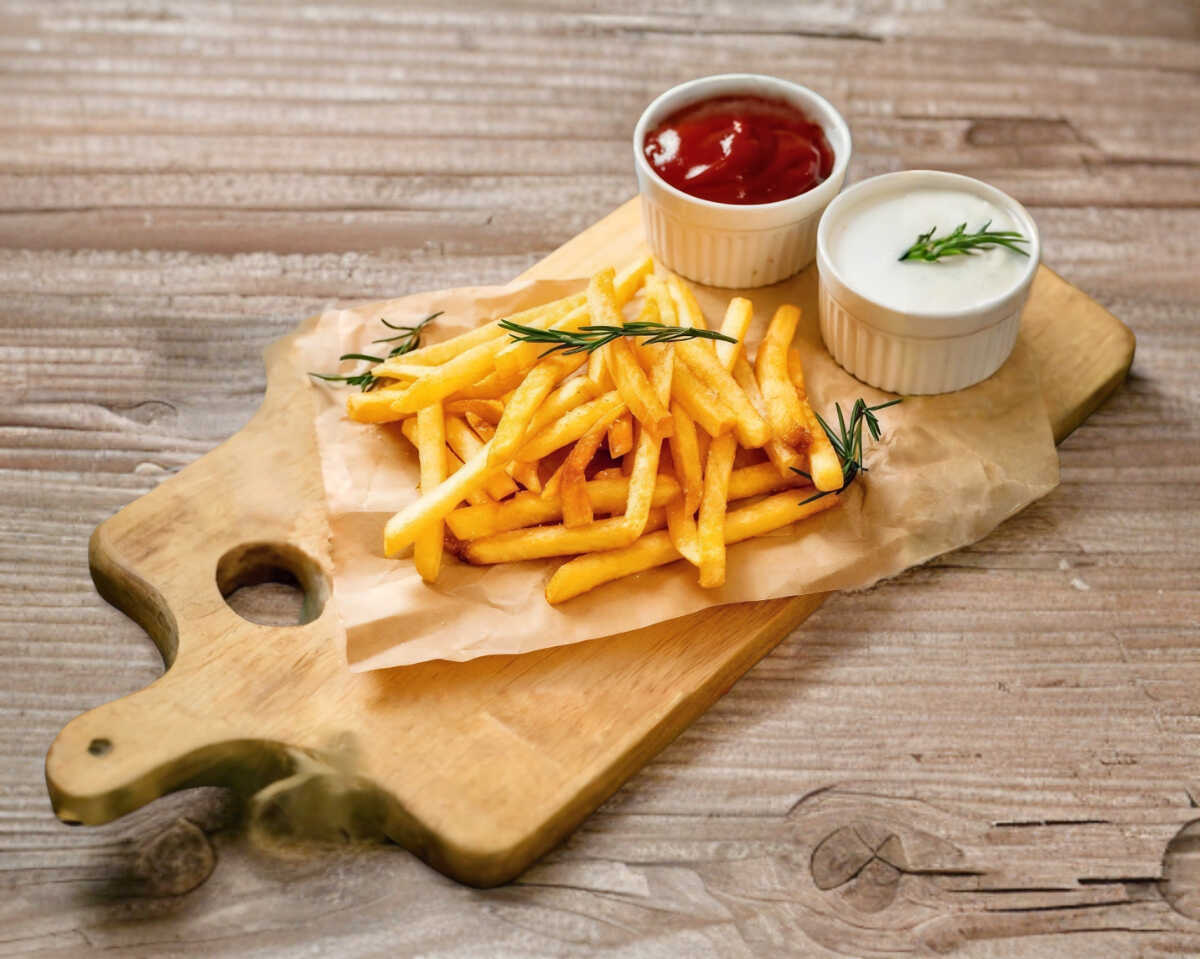 Papas fritas corte recto, con un toque de sal, incluye aderezos