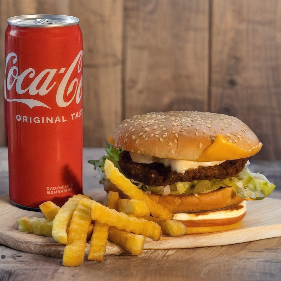 Papas Corte Recto*1 + Hamburguesa de la Casa*1 + Coca Cola 600*1