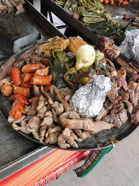 Parrillada de carne asada, salchicha para asar, arrachera, chistorra, chorizo argentino, chorizo español, 1 papa preparada con todas las carnes cocinada al carbón, incluye tortillas,6 quesadillas,pico de gallo y guacamole. Ideal para 5 a 6 personas.