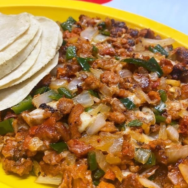 ½ Kilo de Alambre viene con jamon, tocino, carne de pastor, chile morrón, tomate y cebolla con queso fundido *1 + Coca Cola 2 L*1
