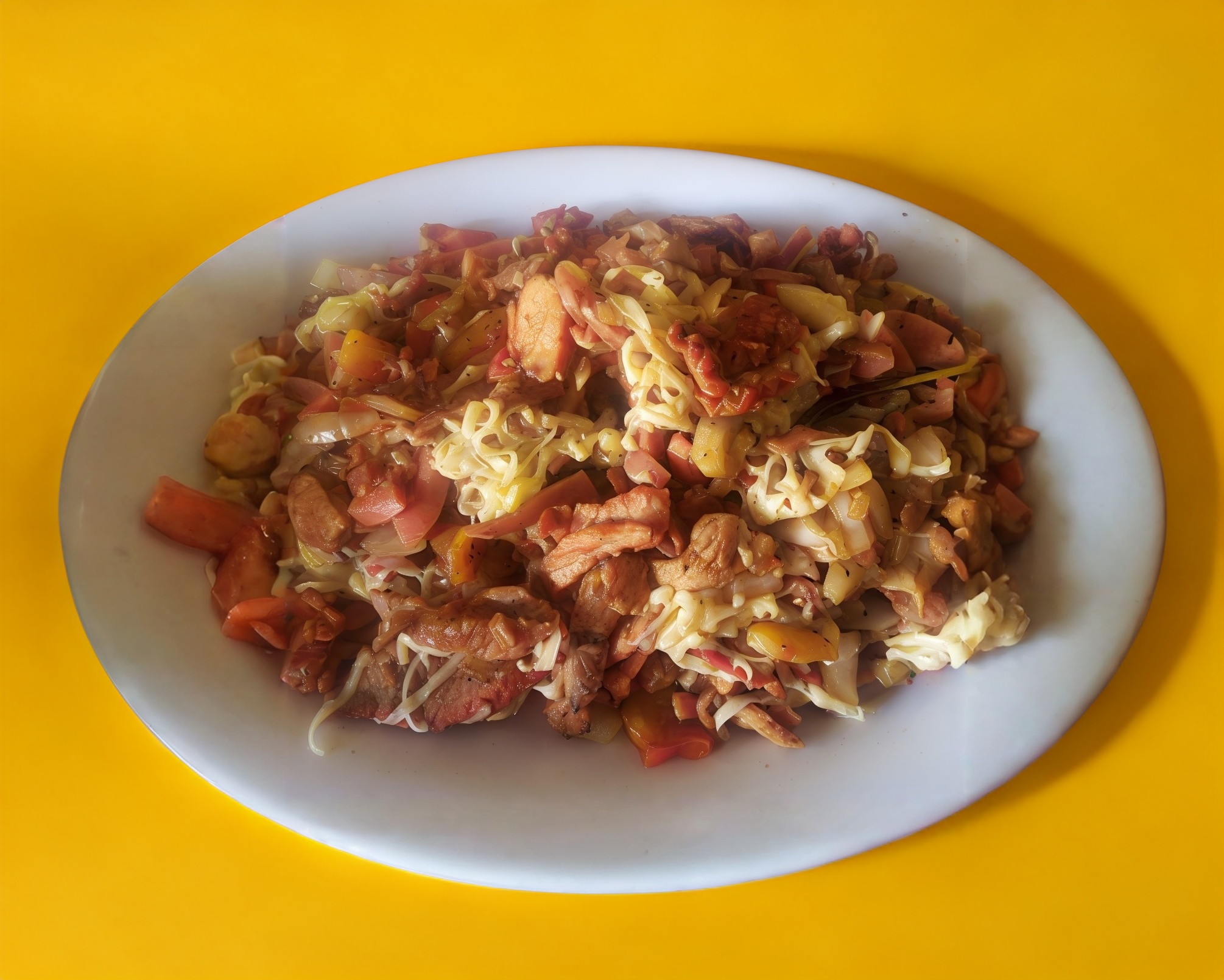 Pastor, cebolla, tomate, jamón, tocino, salchicha y queso. Acompañado por 250 g de tortilla, cebolla, cilantro, salsa, limones y col. Rinde de 4 a 5 personas.
