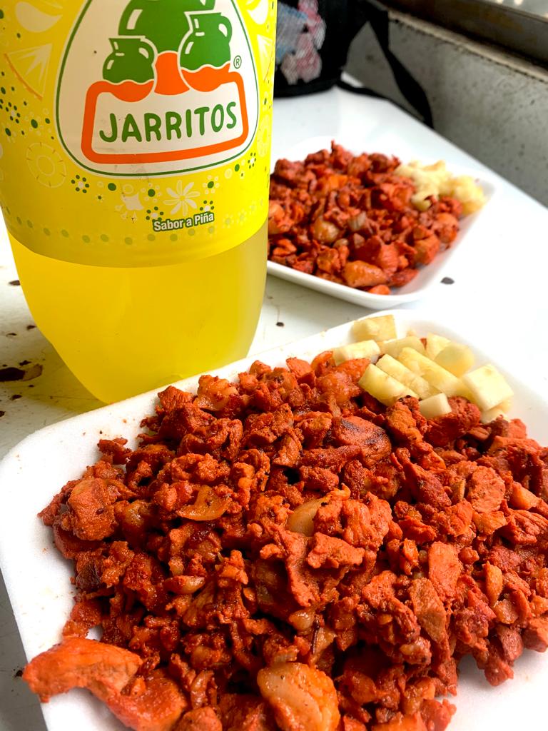 1/2 kilo de chuleta (peso en crudo). Incluye tortillas, cebolla, cilantro, piña, salsa verde, etc