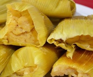 Suave tamal de maíz dulce, con trocitos de chicharrón.