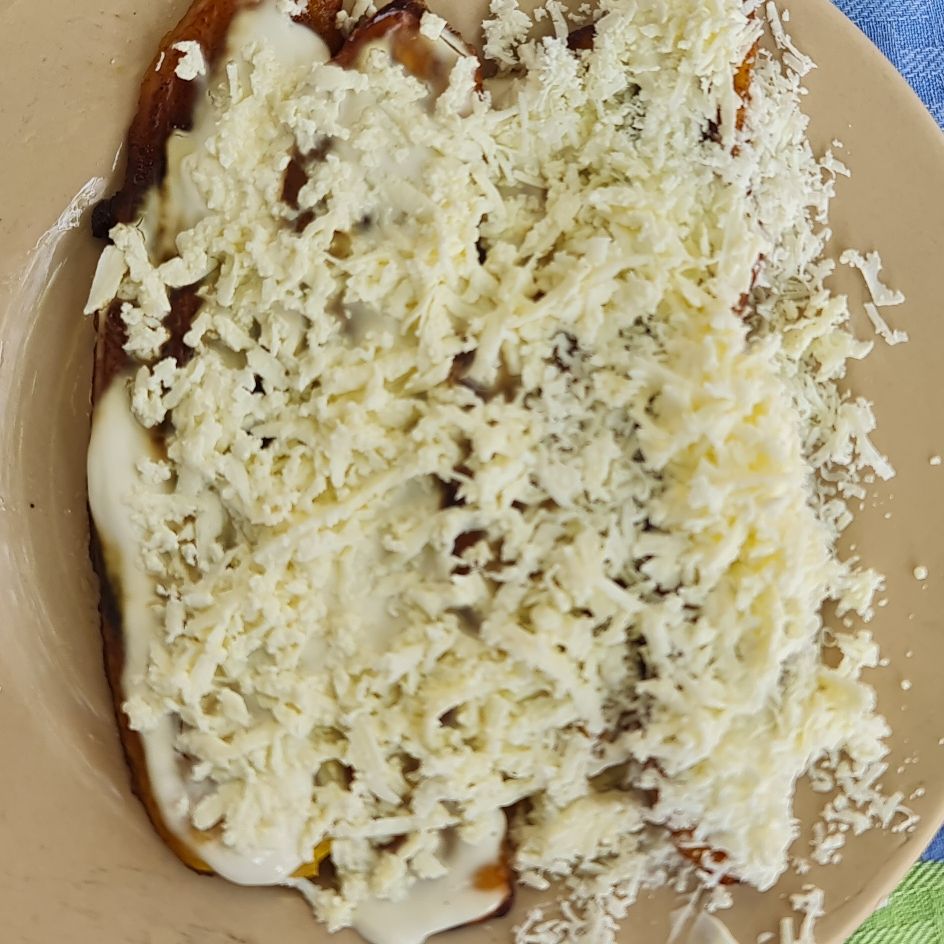 Tamal de masa acompañado de queso Oaxaca, jamón, rajas y cátsup.