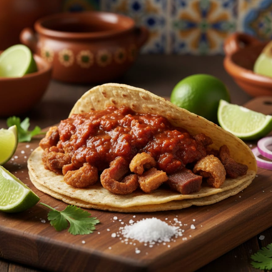 Taco de Chicharrón en Salsa Roja