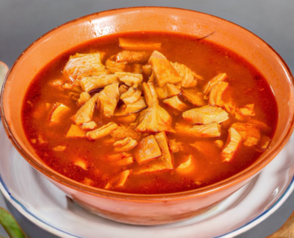Consome de Cabeza de res. Servido en un vaso de 11 onzas. Acompañado de limon, col y cilantro y salsa roja, verde o nuestra especialidad salsa de cacahuate. (No incluye tortillas) Cada consome se sirve con una porcion de carne de res (surtido) lo equivalente a un taco.