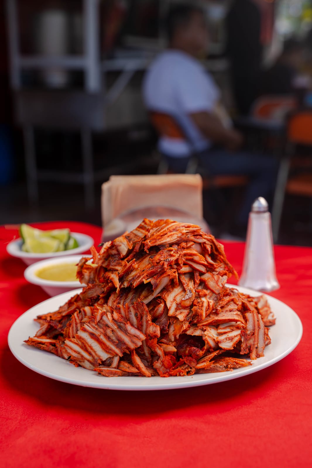 Cochinita pibil, cebolla, y caldo.