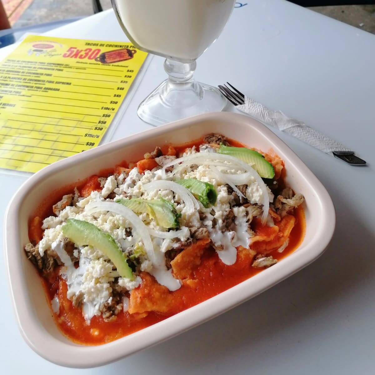 Pueden ser verdes o rojos con huevo, bistec o cochinita pibil.