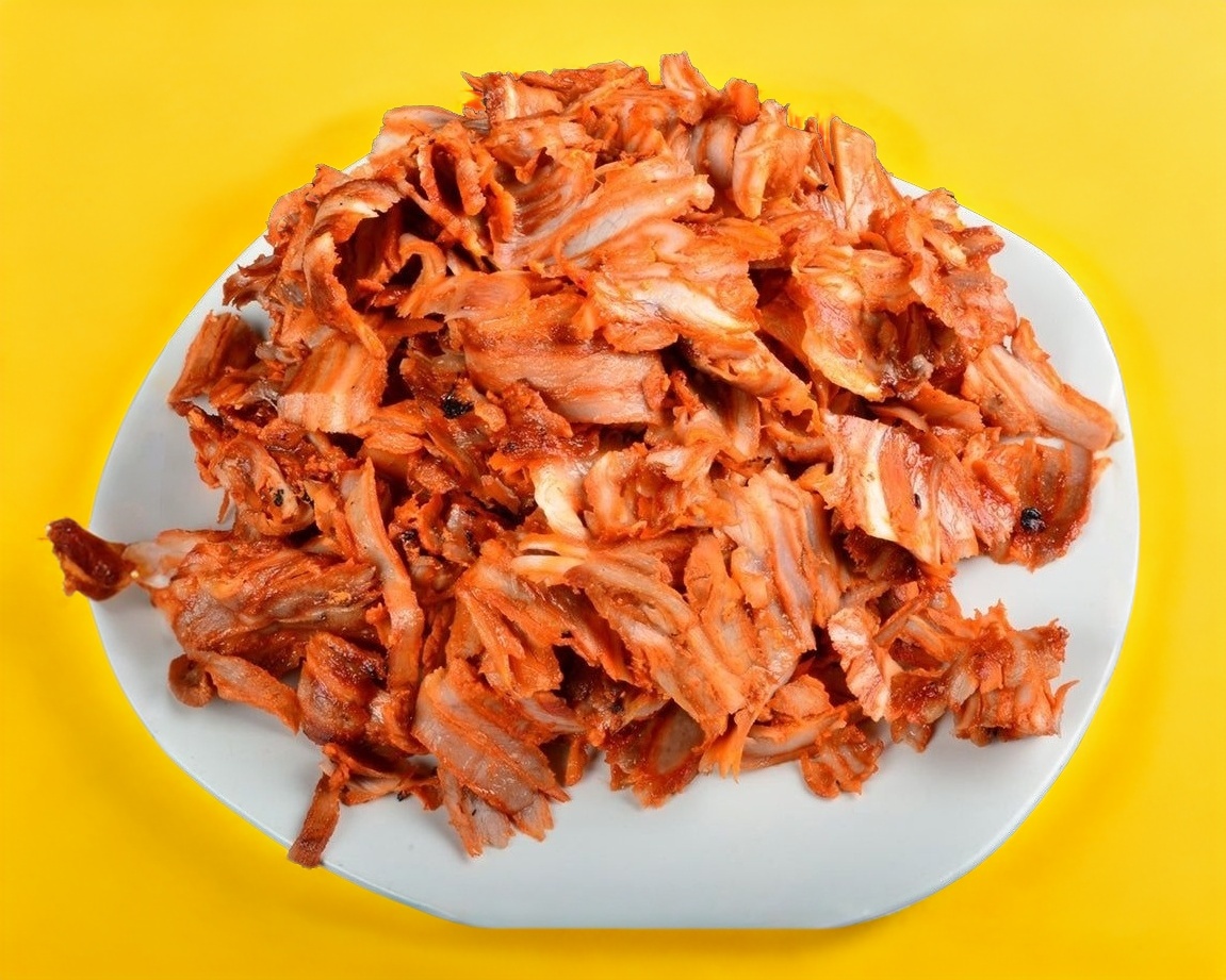 Carne al pastor, 25 tortillas, cilantro, cebolla, pepinos, limones y salsa