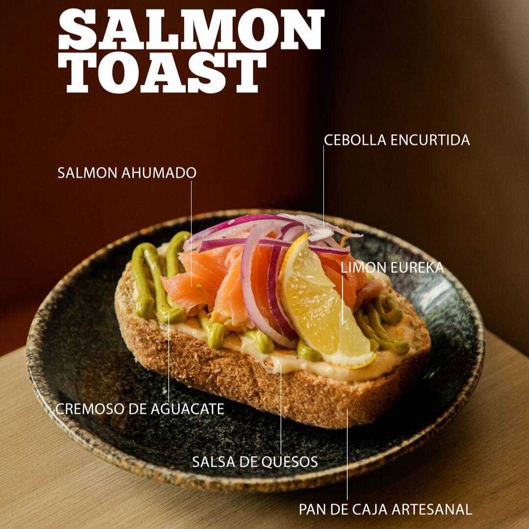 Base de queso de cabra, salmon ahumado, cebolla encurtida, coronado con cremoso de aguacate.