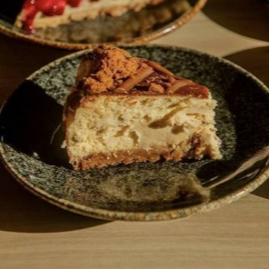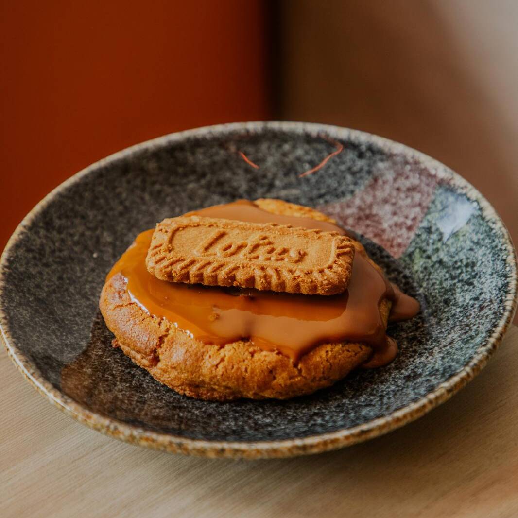 Preparada con queso, chamuscado y caramelizado en la parte superior, con base y crumbles de lotus.