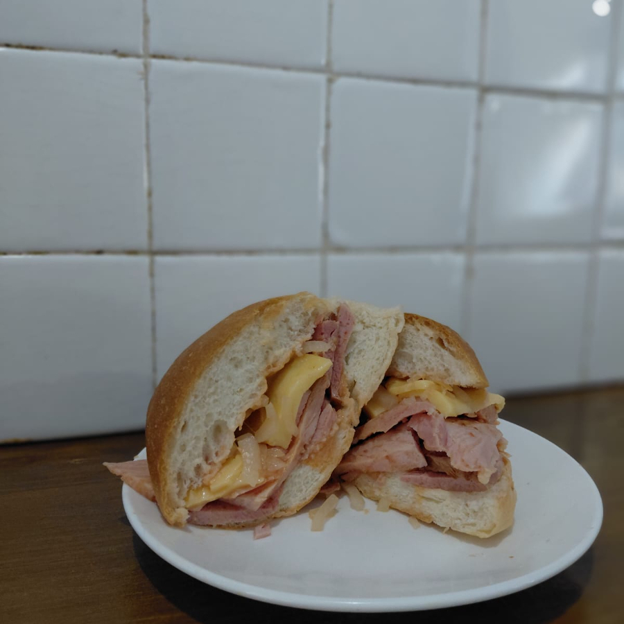Porción personal:(250g) jamon,Queso,cebolla,Cátsup,cama de frijoles en el pan(chiles aparte)