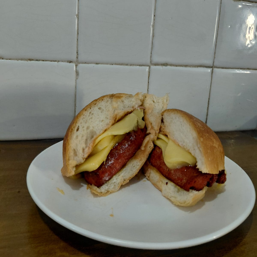 Porcion personal:(180g) Chorizo,Queso,cebolla,Cátsup,Cama de frijoles en el pan(chiles van por separado)