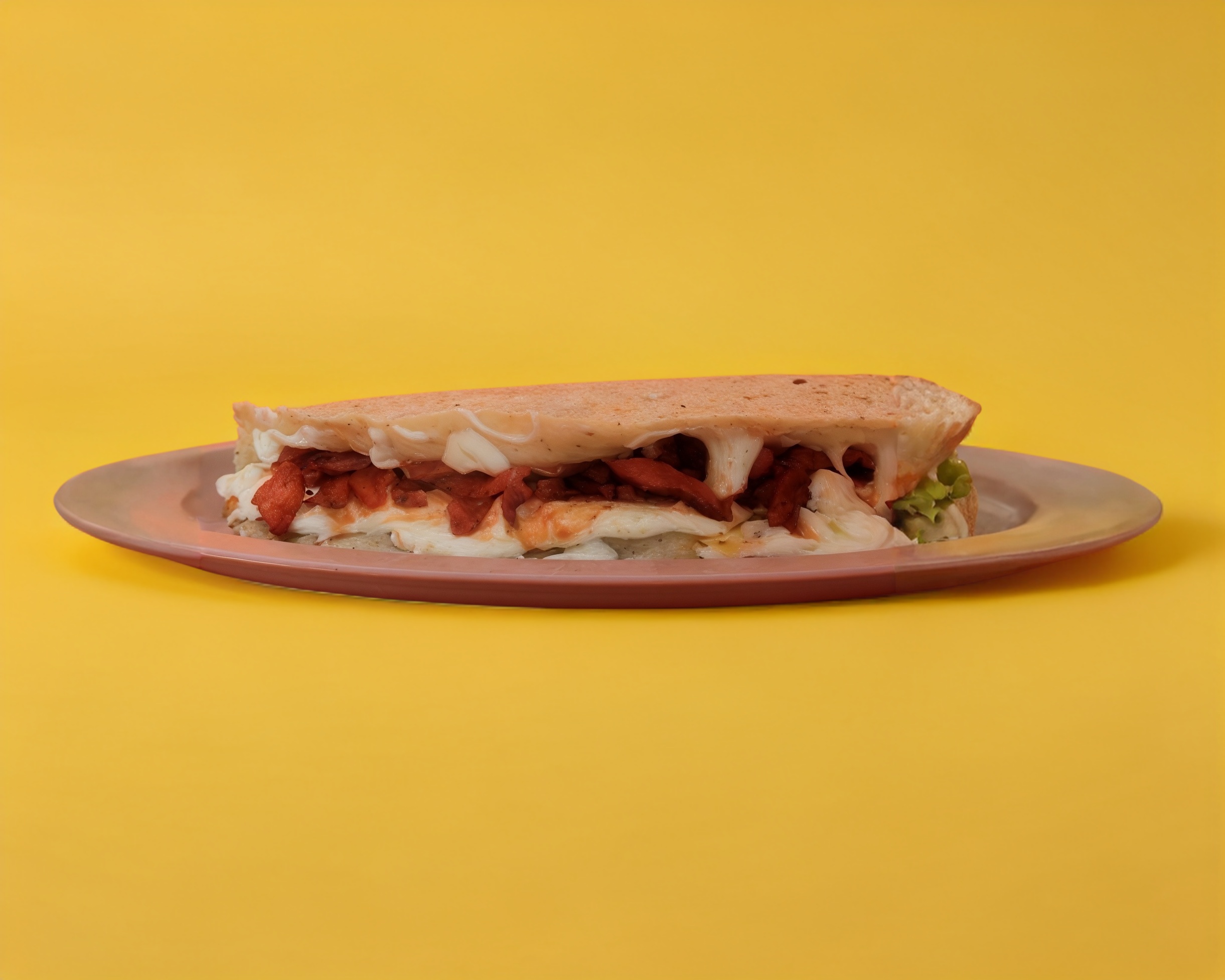 Nuestra tradicional torta de milanesa picada en tiras,preparada en la plancha con mantequilla y adobo (Diferente pan un poco mas chica pero igual de buena)