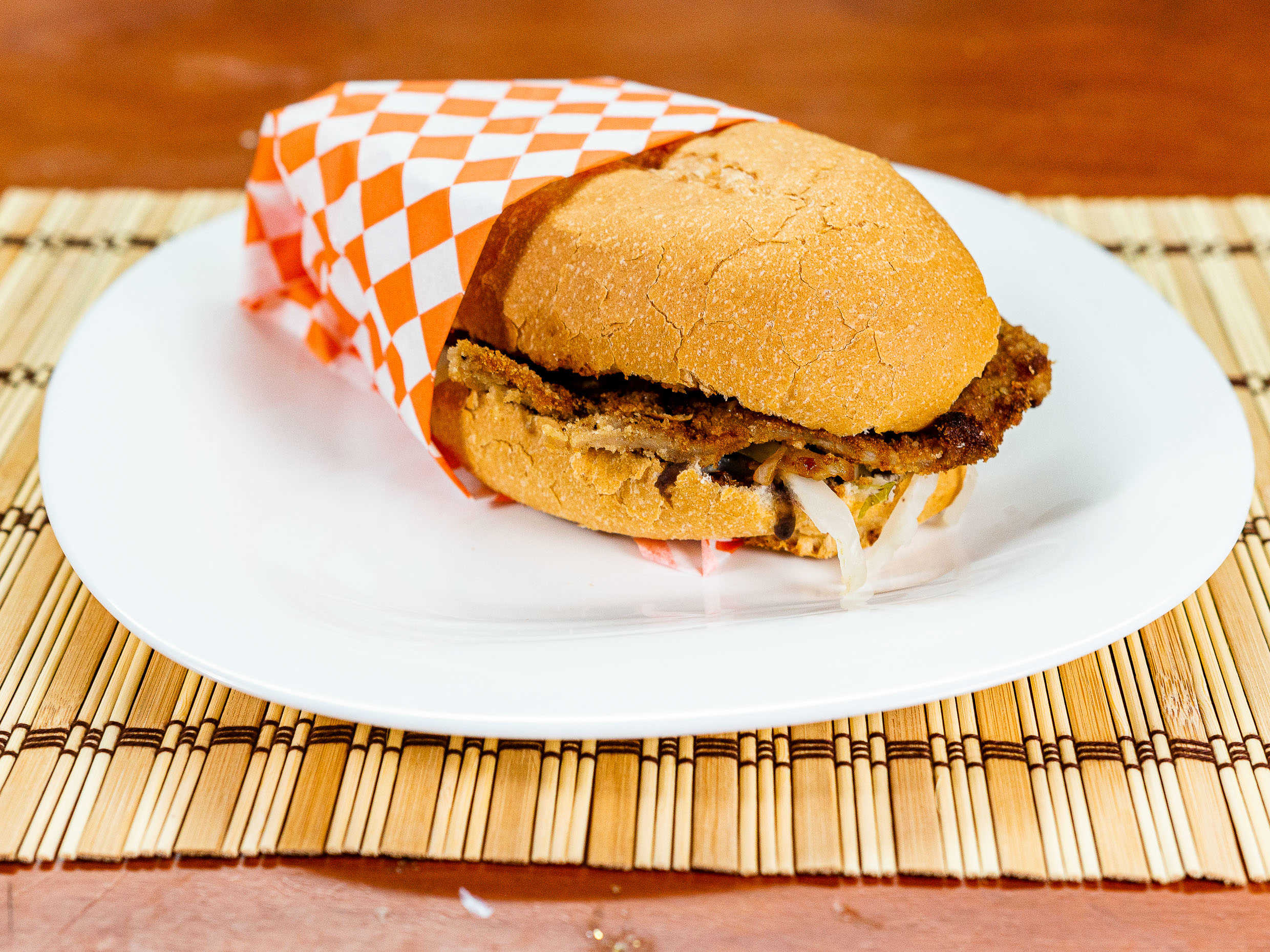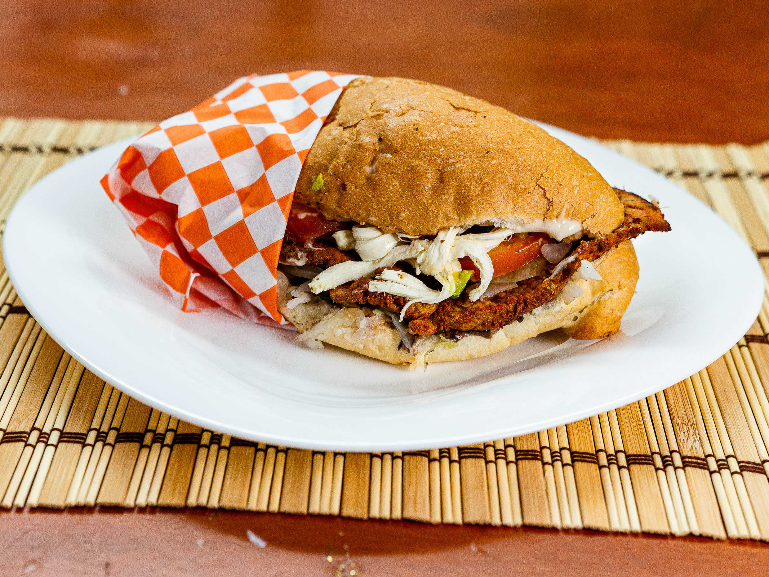 MILANESA DE CERDO EMPANIZADA, QUESO HEBRA, AMARILLO, FRIJOLES, MAYONESA, CEBOLLA PREPARADA, COL PREPARADA, TOMATE, AGUACATE, CHIPOTLE DULCE.