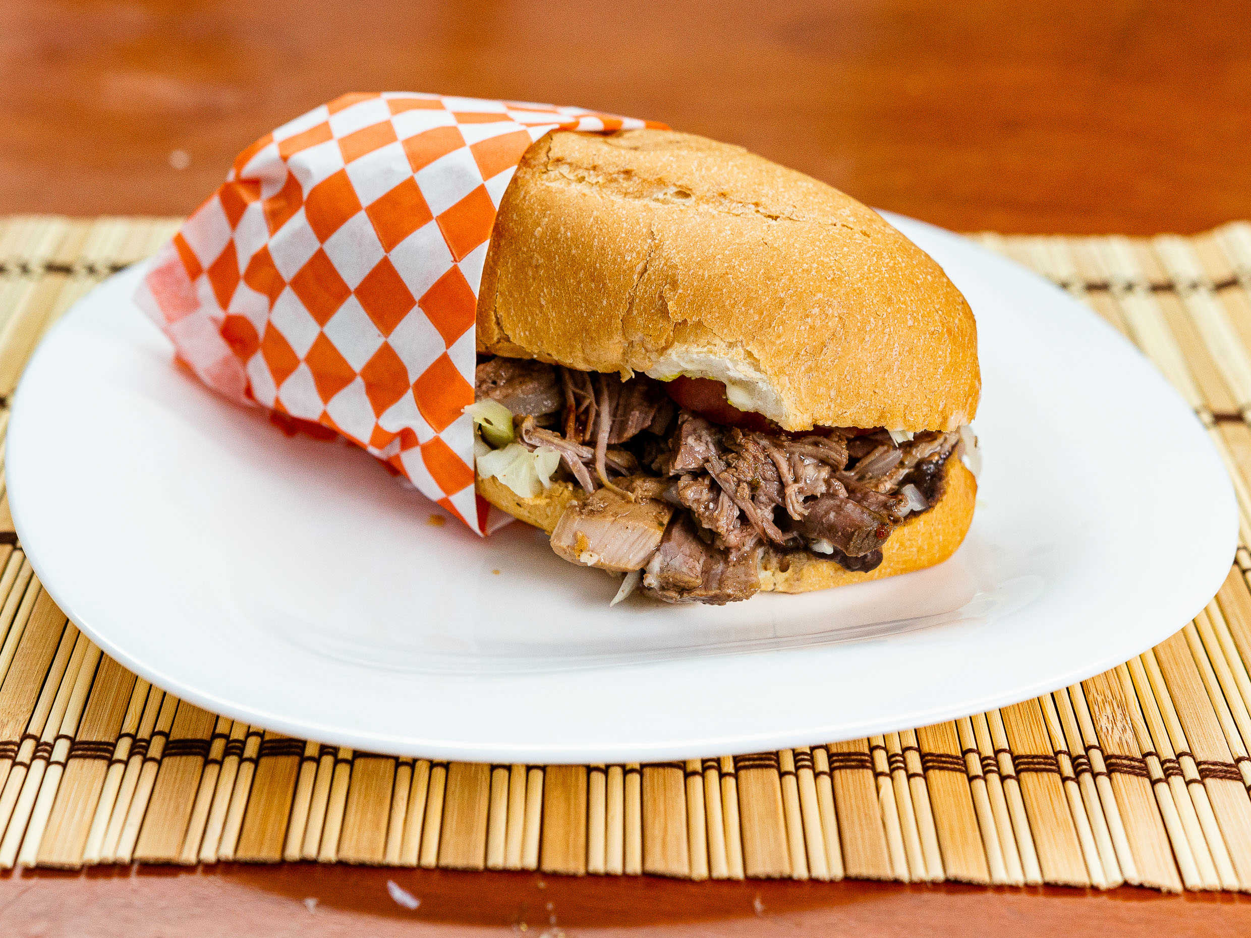 PIERNA DE CERDO, QUESO HEBRA, AMARILLO, FRIJOLES, MAYONESA, CEBOLLA PREPARADA, COL PREPARADA, TOMATE, AGUACATE, CHIPOTLE DULCE.