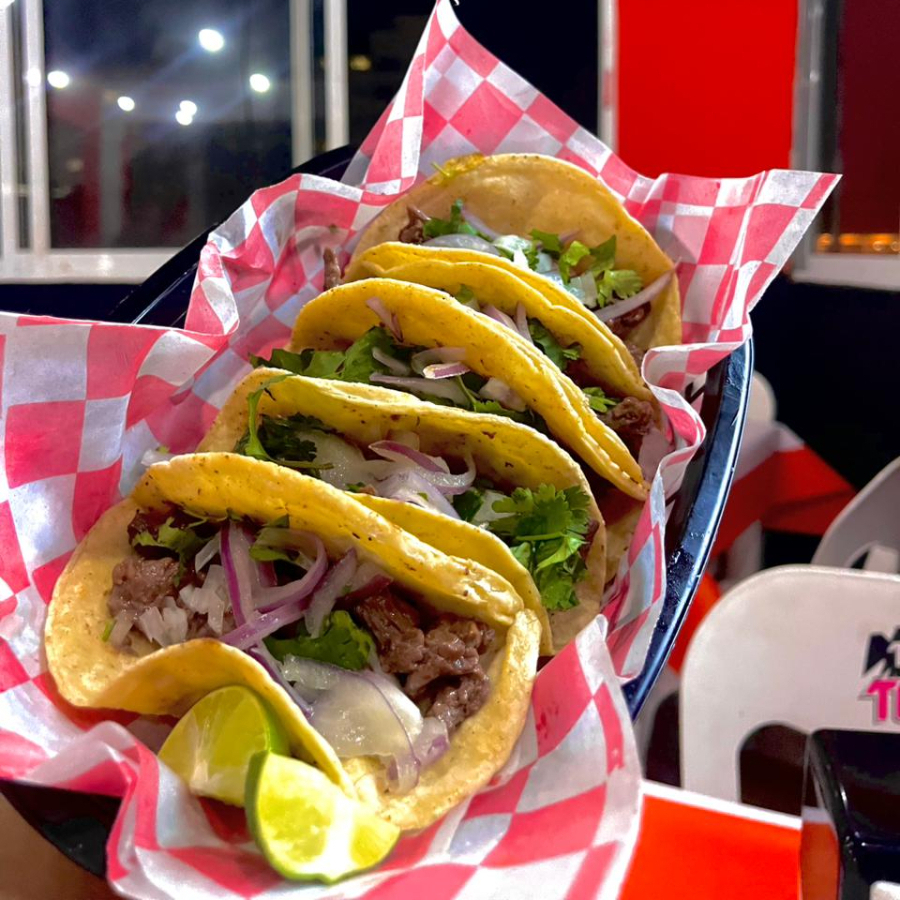 Orden de 5 tacos en tortilla de maiz con lechon cubano o carne de arrachera de res (a elegir) y acompañado de cebolla morada y cilanto
