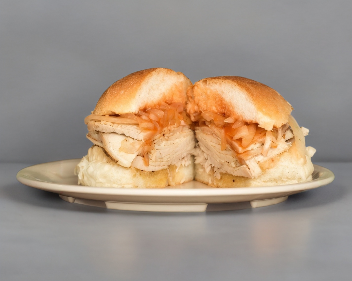 pollo hervido y frito con salsa de chileancho, lleva frijol, cebolla curtida, catsup y aceite de olivo